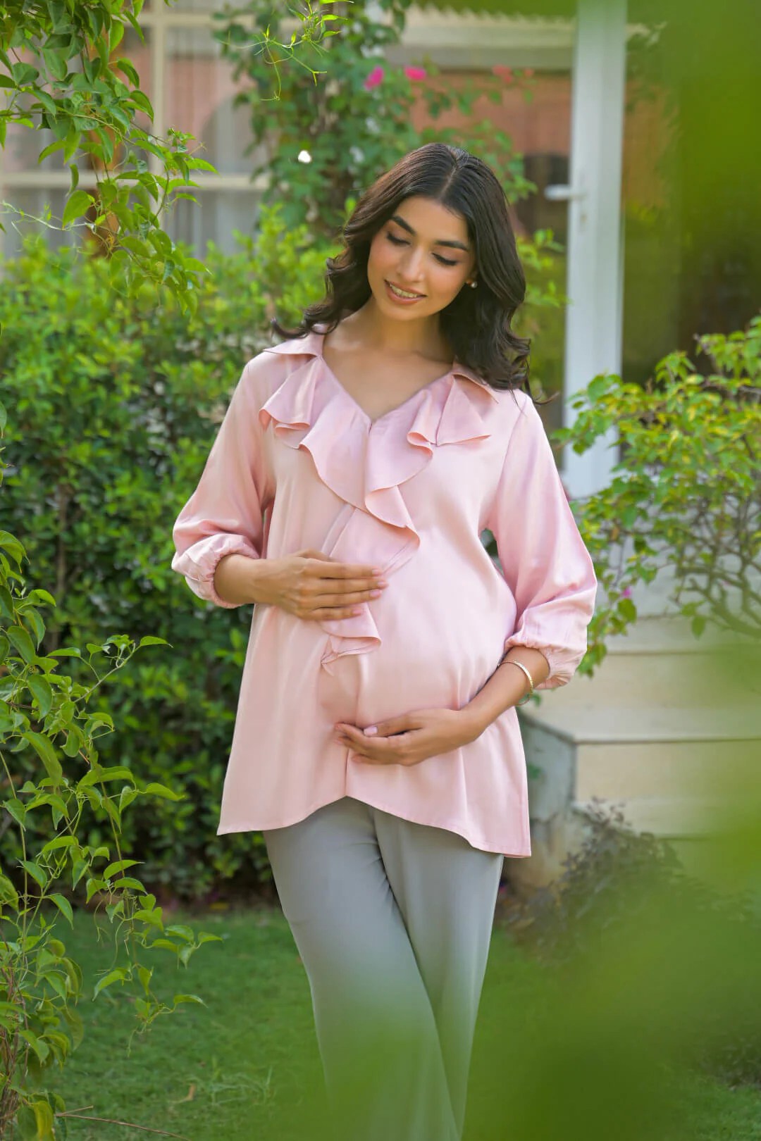 Light Pink Ruffled Maternity Feeding Top