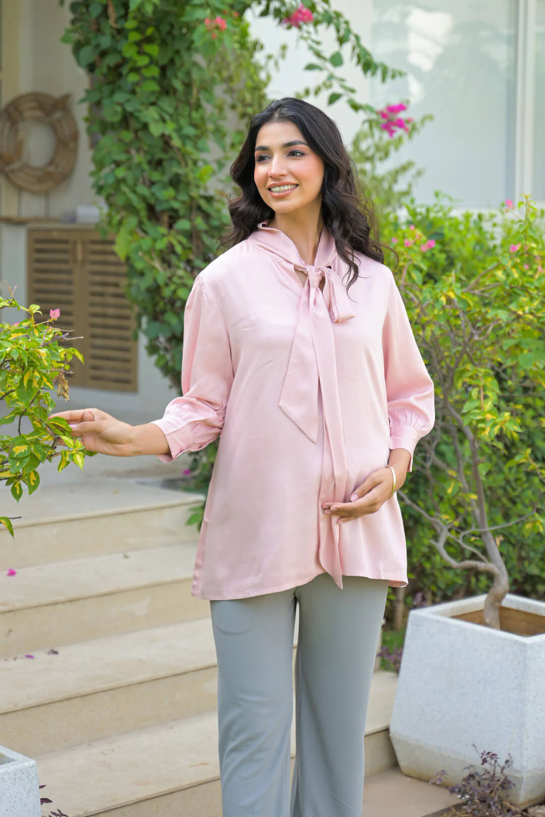 Light Pink Tie-up Neck Maternity Feeding Top